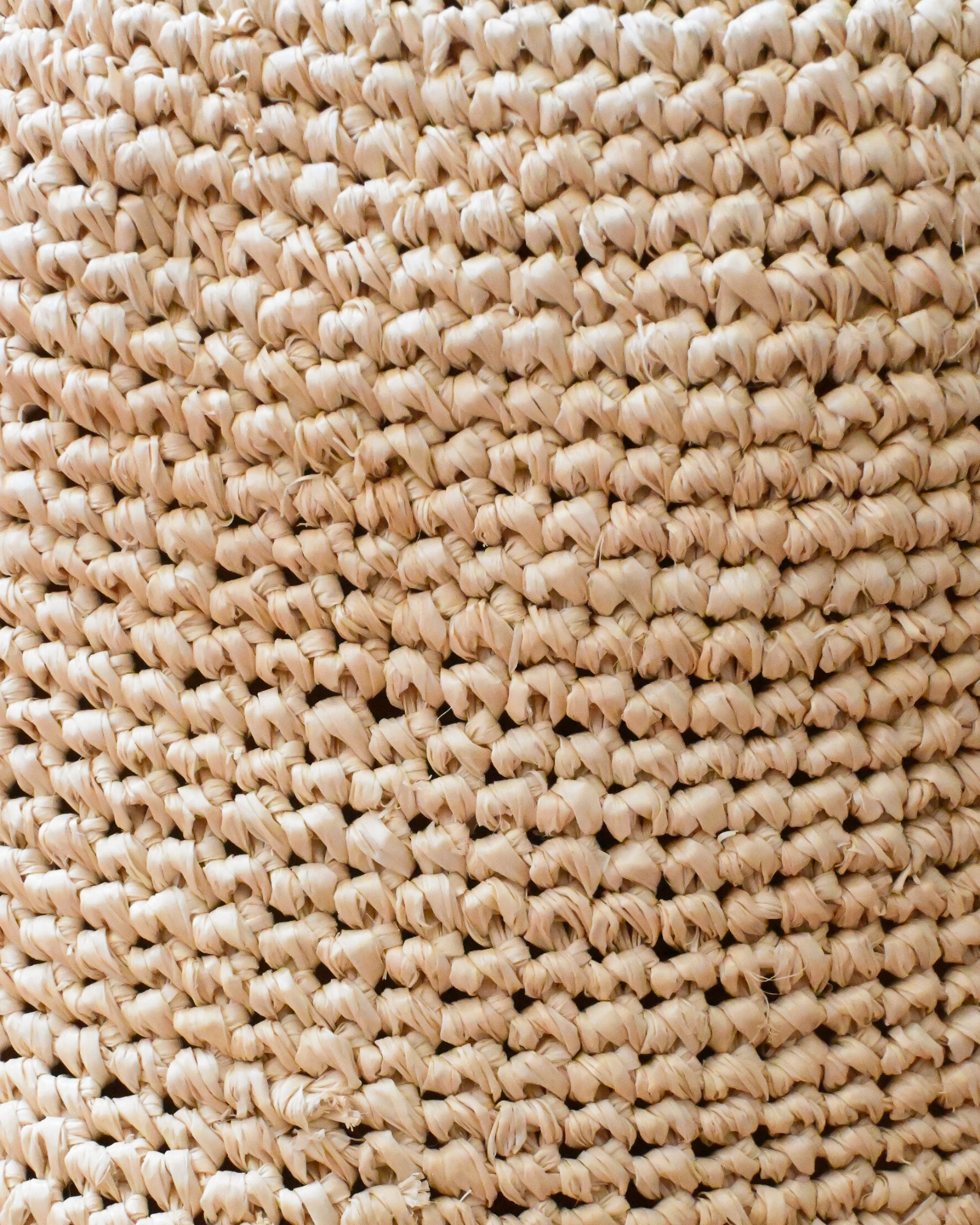 Spot clean only with a soft, dry or slightly damp cloth. Keep dry and avoid rain or moisture. Do not soak, scrub, or machine wash. Air dry at room temperature if damp. Avoid overloading. Natural variations and slight fraying are part of raffia’s character, handle with care.